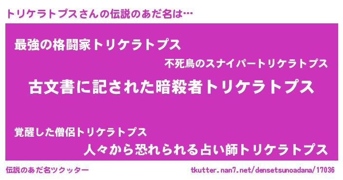 | ファンタジー風あだ名 | 『トリディッシュ』『ゼトリトゥ』 |
