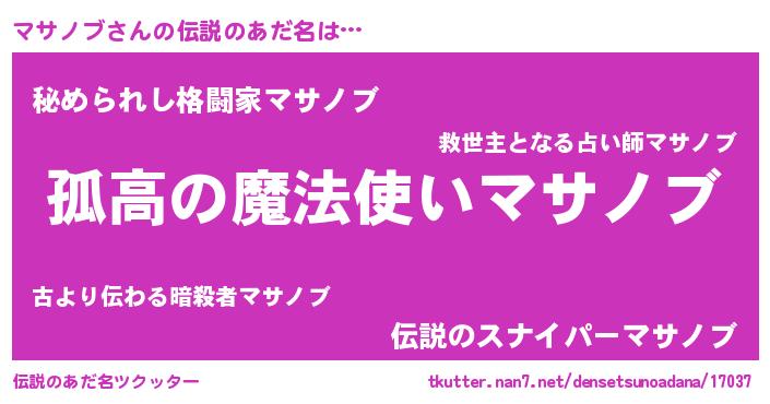 | ヒーロー風カッコイイあだ名 | 『暗黒騎士マサ』『超時空戦士マサノブ』 |