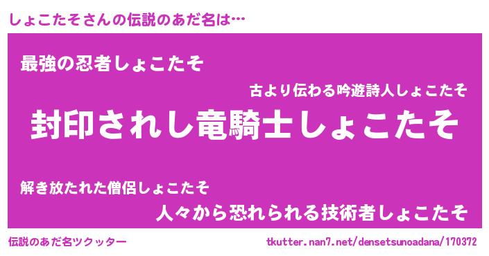 | ヒーロー風カッコイイあだ名 | 『スーパーショコタソ』『ネオショコタソ』 |