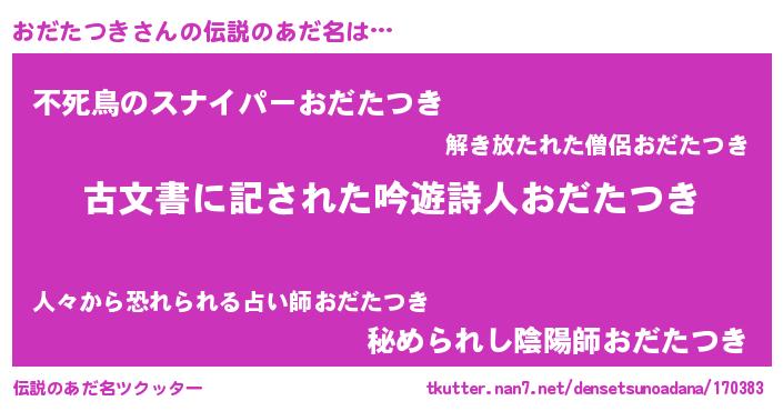 | ヘコむあだ名 | 『おだたつき(小並感)』『おだもー』 |