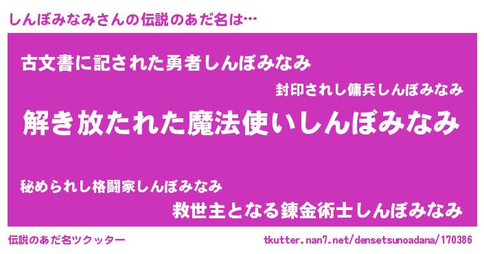 | 意味不明あだ名 | 『とにかく怪しいしんぼみなみ』 |