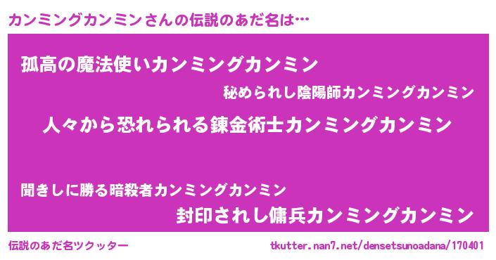 | ヒーロー風カッコイイあだ名 | 『友情の使者カンミングカンミン』 |