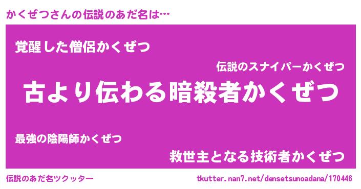 | 男性向けラノベタイトル風あだ名 | 『魔弾の王とかくぜつ』『緋弾のカクゼツ』 |