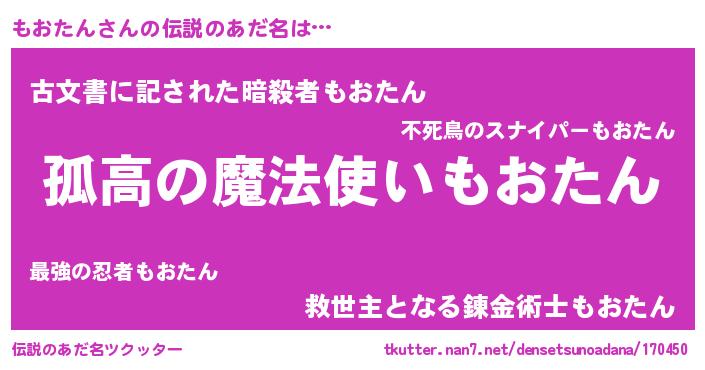 | 胡散臭い通販商品みたいなあだ名 | 『信頼と実績のサプリメント…その名も「もおたん」』 |