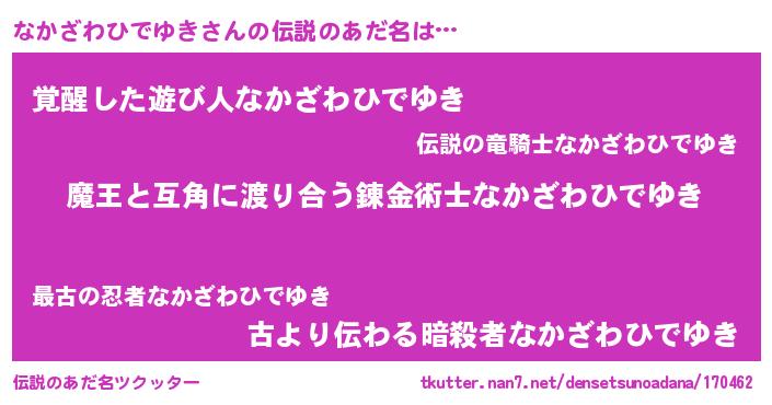 | 男性向けラノベタイトル風あだ名 | 『なかざわひでゆきに滅ぼされるだけの簡単なお仕事です』 |