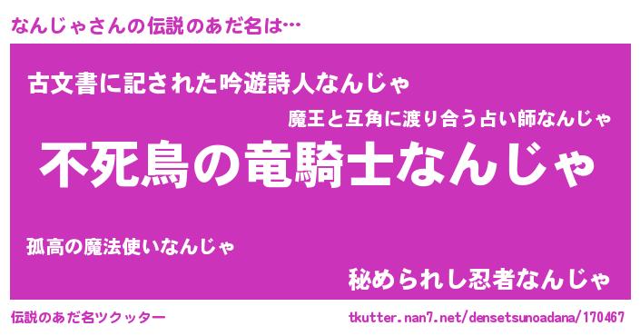 | 女子向けラノベタイトル風あだ名 | 『なんじゃ姫と円卓の騎士』 |