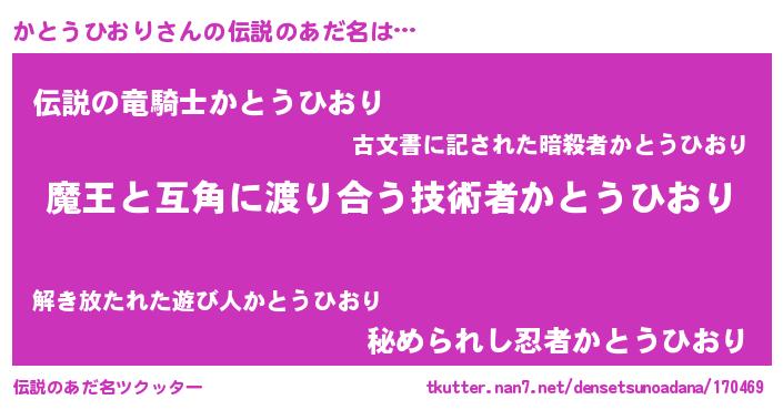 | 欧米人風あだ名 | 『かとうひおり・ステッグマイヤー』 |