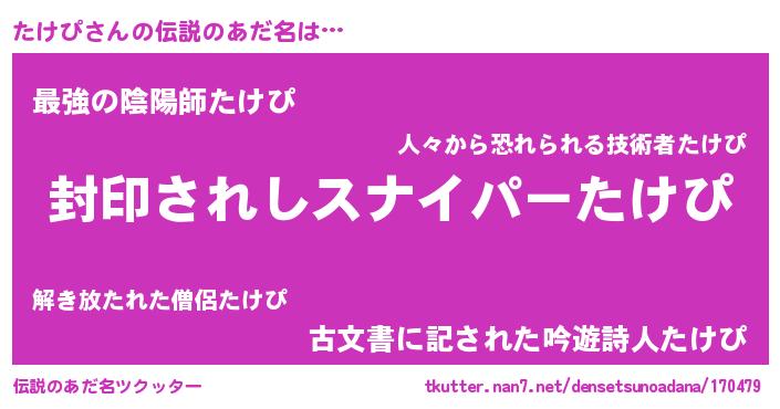| ヒーロー風カッコイイあだ名 | 『スーパータケピ』『ウルトラたけぴマン』 |