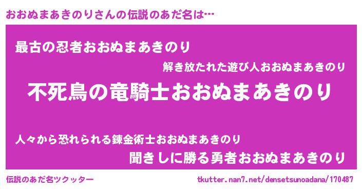 | 意味不明あだ名 | 『住所不定無職おおぬまあきのり(1歳)』 |