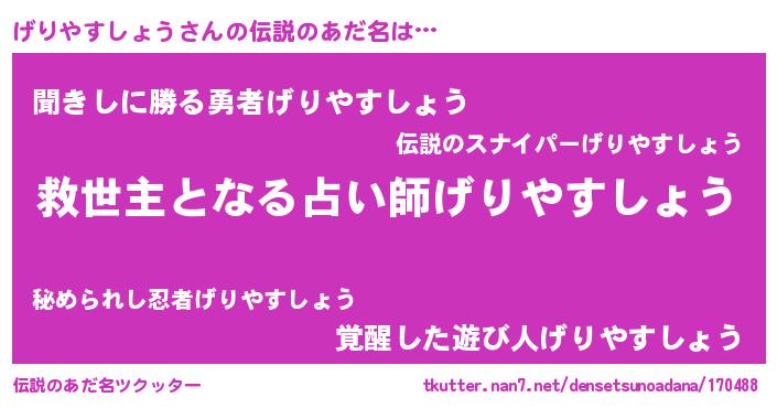 | ヒーロー風カッコイイあだ名 | 『究極戦士ゲリヤスショウ』 |
