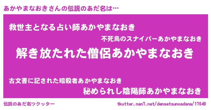 | 女子向けラノベタイトル風あだ名 | 『あかやまなおきの卵を拾いまして』 |