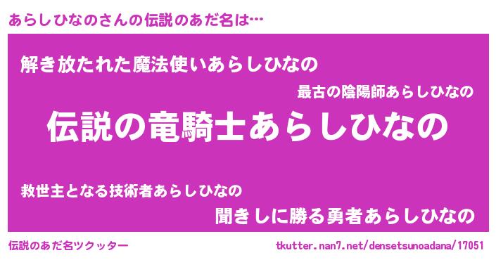 | 胡散臭い通販商品みたいなあだ名 | 『必ず成功するブレスレット…その名も「あらしひなの」』 |