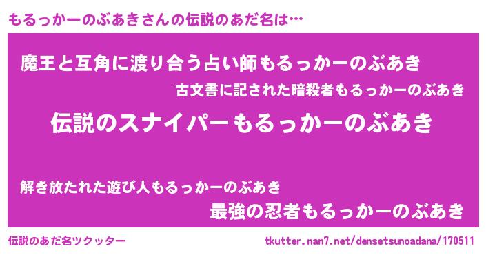 | 胡散臭い通販商品みたいなあだ名 | 『必ず成功する霊験あらたかなお札…その名も「もるっかーのぶあき」』 |