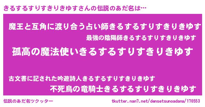 | 胡散臭い通販商品みたいなあだ名 | 『信頼と実績のサプリメント…その名も「きるするすりすきりきゆす」』 |