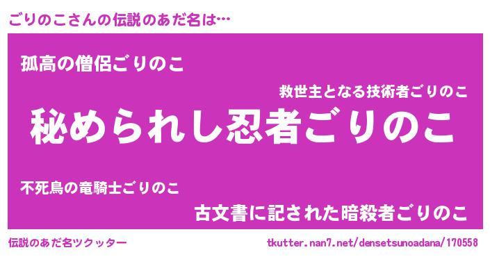 | ファンタジー風あだ名 | 『エターナルゴリノコー』『ゼゴリトゥ』 |