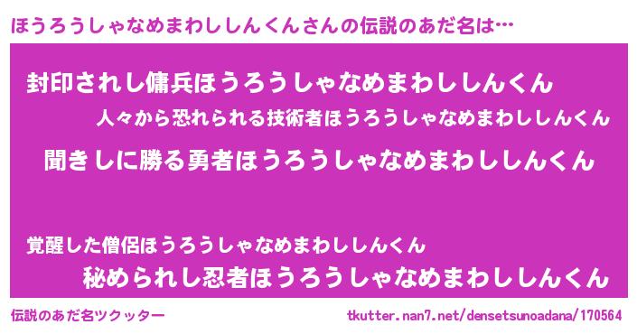 | 料理風あだ名 | 『ほうろうしゃなめまわししんくんのカルパッチョ風』 |