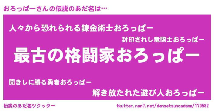 | 意味不明あだ名 | 『おろっぱーフォーエバー』 |