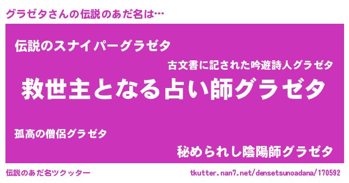 | 男性向けラノベタイトル風あだ名 | 『この素晴らしい世界にグラゼタを!』 |