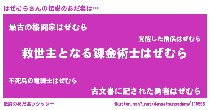 | ヒーロー風カッコイイあだ名 | 『天空の使者はぜむら』『ネオハゼムラ』 |