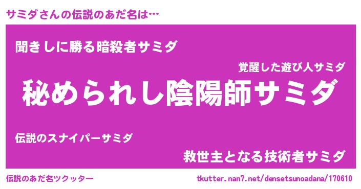 | 女子向けラノベタイトル風あだ名 | 『サミダの雑貨屋さん』『闇のサミダ』 |