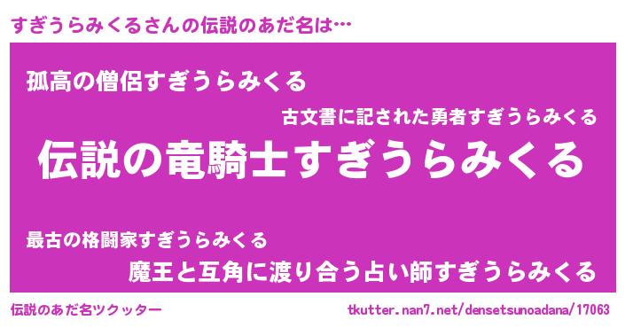 | 女子向けラノベタイトル風あだ名 | 『(仮)すぎうらみくるのやんごとなき事情』 |