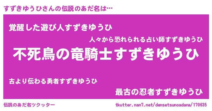 | ヒーロー風カッコイイあだ名 | 『スーパースズキユウヒ』『魔戒騎士スズ』 |