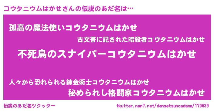 | 男性向けラノベタイトル風あだ名 | 『コウタニウムはかせに滅ぼされるだけの簡単なお仕事です』 |