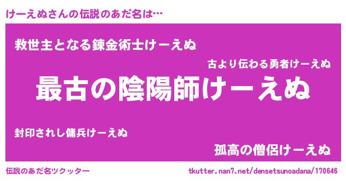 | 男性向けラノベタイトル風あだ名 | 『この素晴らしい世界にけーえぬを!』 |