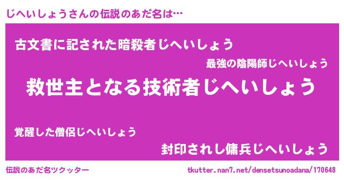 | ヘコむあだ名 | 『じへいしょう(小並感)』『じへにゅー』 |