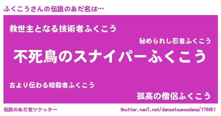 | 胡散臭い通販商品みたいなあだ名 | 『モテモテ間違いなし霊験あらたかなお札…その名も「ふくこう」』 |