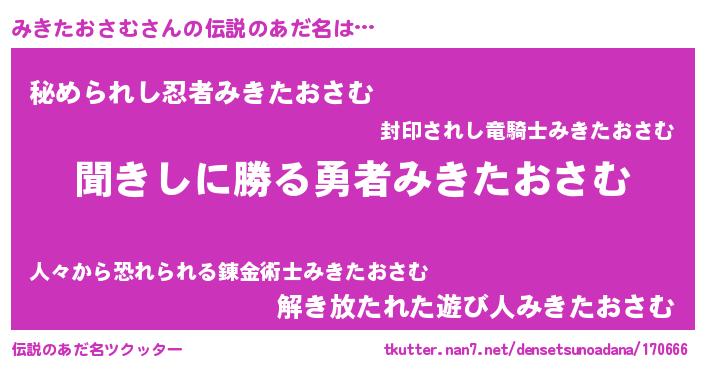 | 意味不明あだ名 | 『永久保存みきたおさむ』 |