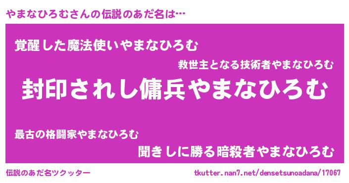| 胡散臭い通販商品みたいなあだ名 | 『億万長者になれる水晶球…その名も「やまなひろむ」』 |