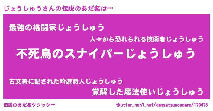 | 意味不明あだ名 | 『住所不定無職じょうしゅう(71歳)』 |