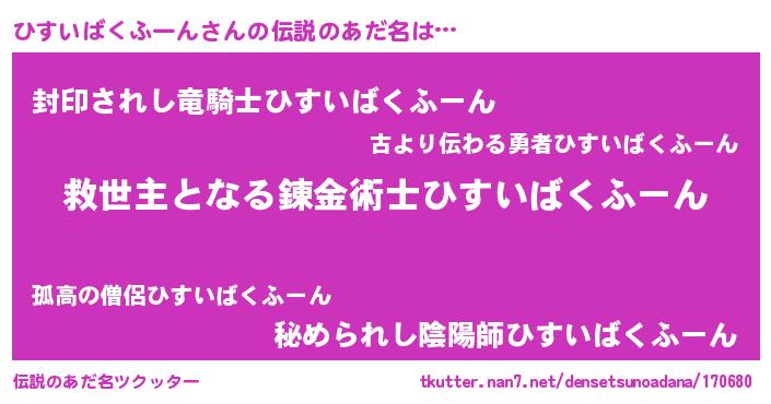 | ヒーロー風カッコイイあだ名 | 『慈愛の使者ひすいばくふーん』 |