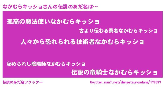 | 意味不明あだ名 | 『住所不定無職なかむらキッショ(11歳)』 |
