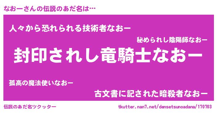 | 男性向けラノベタイトル風あだ名 | 『ナオーアートオンライン』 |