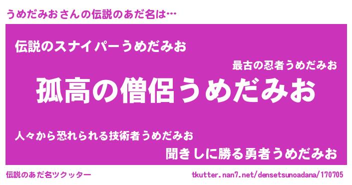 | 料理風あだ名 | 『うめだみおごはん』 |