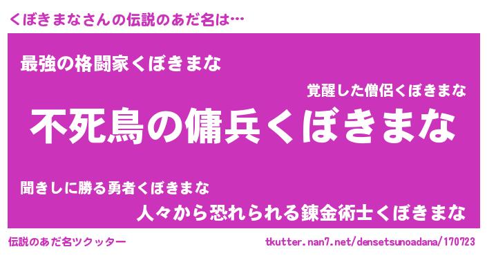 | 男性向けラノベタイトル風あだ名 | 『クボキマナアートオンライン』 |