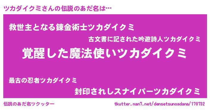 | ヒーロー風カッコイイあだ名 | 『仮面ツカダー』『幻影騎士ツカ』 |