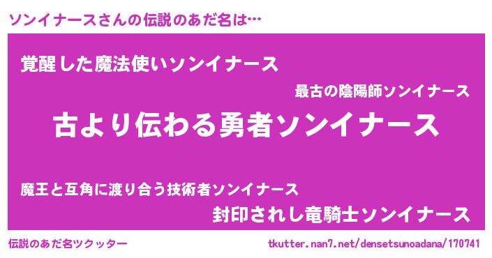 | 胡散臭い通販商品みたいなあだ名 | 『来世でも幸せになれる水素水…その名も「ソンイナース」』 |