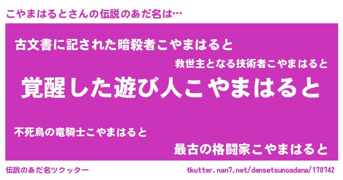 | ヒーロー風カッコイイあだ名 | 『究極戦士コヤマハルト』『炎刃騎士コヤ』 |