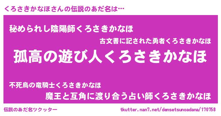 | 胡散臭い通販商品みたいなあだ名 | 『信頼と実績のペンダント…その名も「くろさきかなほ」』 |