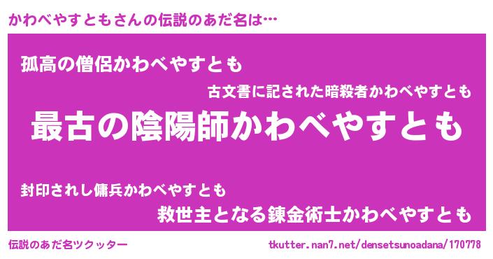 | ファンタジー風あだ名 | 『エターナルカワベヤストモー』 |