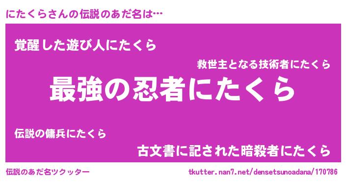 | 意味不明あだ名 | 『住所不定無職にたくら(53歳)』 |
