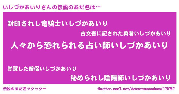 | ヒーロー風カッコイイあだ名 | 『正義の使者いしづかあいり』 |