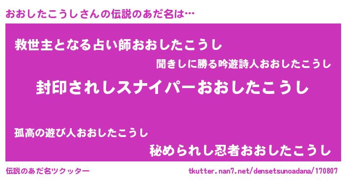 | 意味不明あだ名 | 『自称おおしたこうし』 |