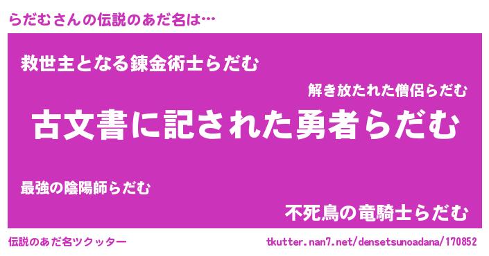 | ヒーロー風カッコイイあだ名 | 『ネオラダム』『慈愛の使者らだむ』 |