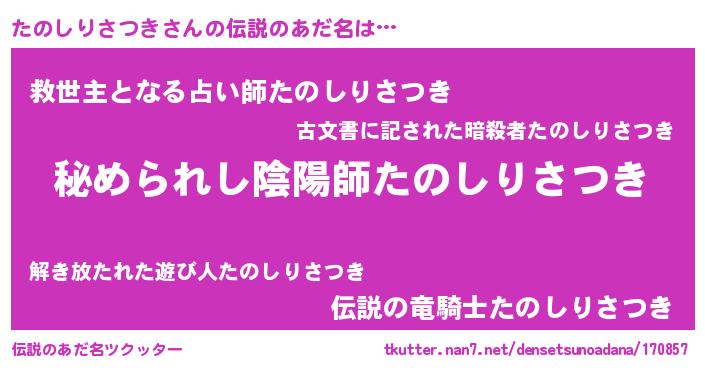 | ファンタジー風あだ名 | 『エターナルタノシリサツキー』 |