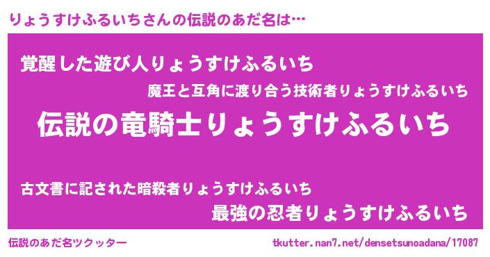 | 女子向けラノベタイトル風あだ名 | 『(仮)りょうすけふるいちのやんごとなき事情』 |
