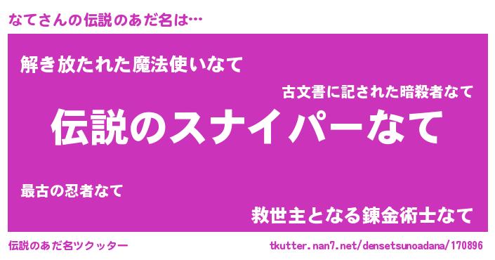 | ファンタジー風あだ名 | 『ゼナテトゥ』『カークナテラー』 |